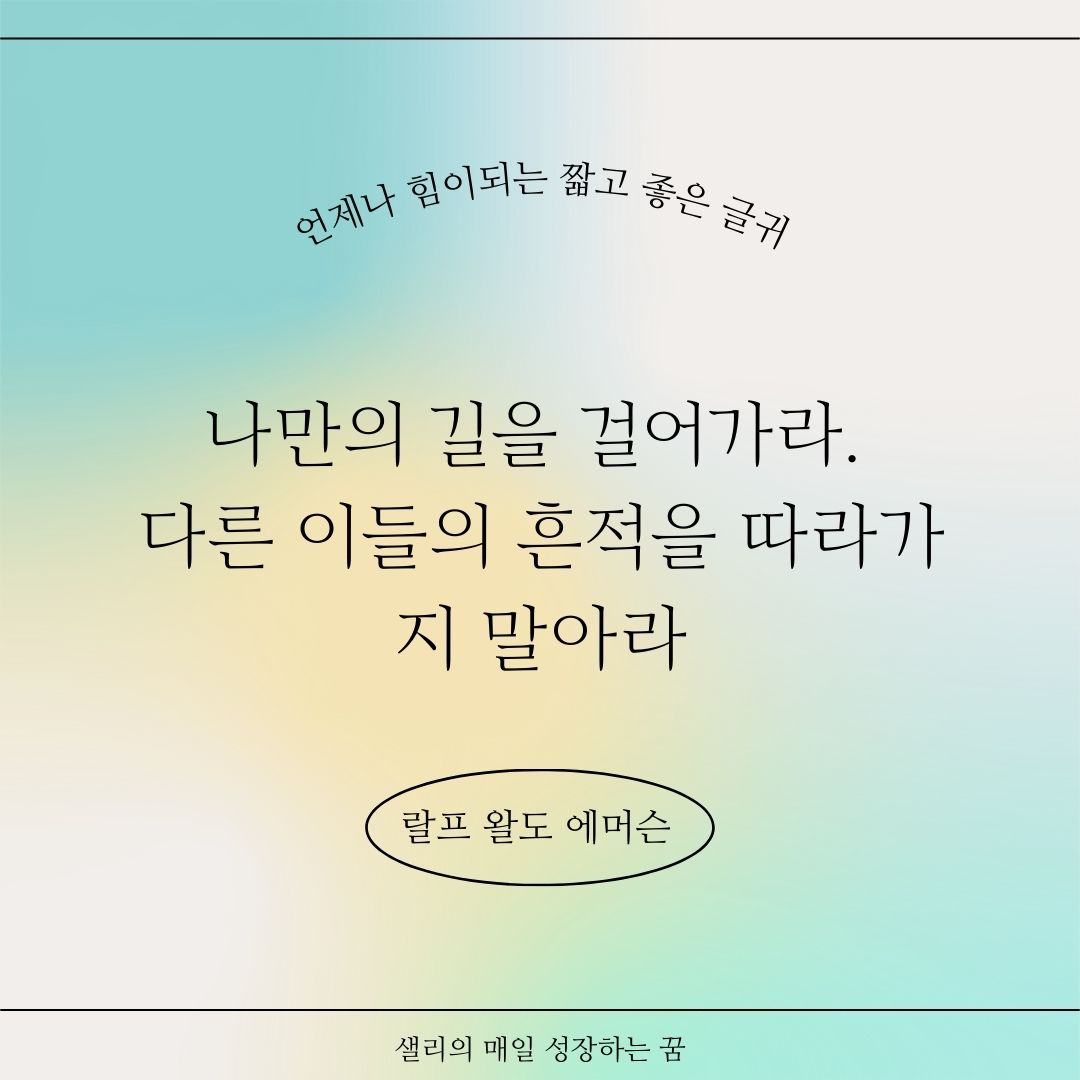 "나만의 길을 걸어가라. 다른 이들의 흔적을 따라가지 말아라." - 랄프 왈도 에머슨