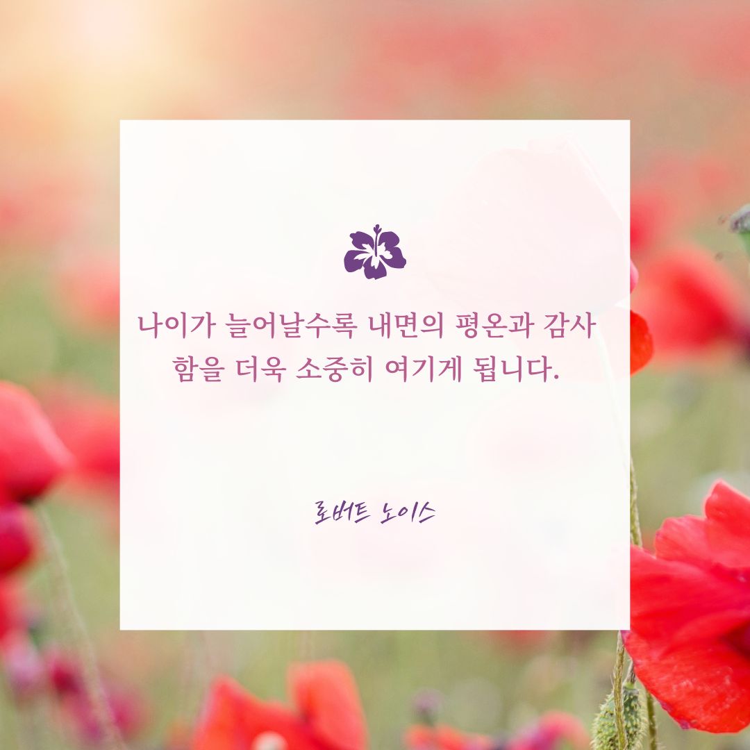 "나이가 늘어날수록 내면의 평온과 감사함을 더욱 소중히 여기게 됩니다." - 로버트 노이스