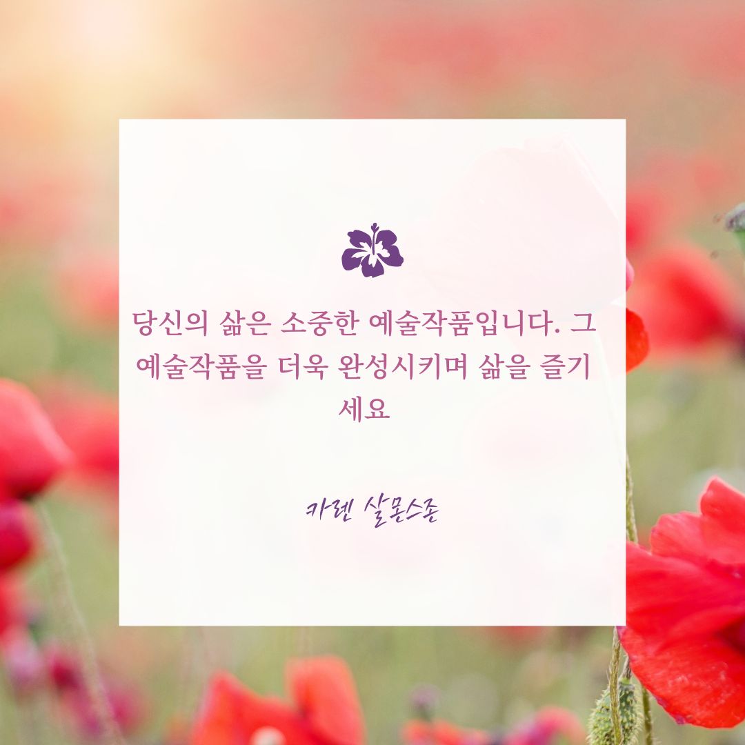 "당신의 삶은 소중한 예술작품입니다. 그 예술작품을 더욱 완성시키며 삶을 즐기세요." - 카렌 살몬스존