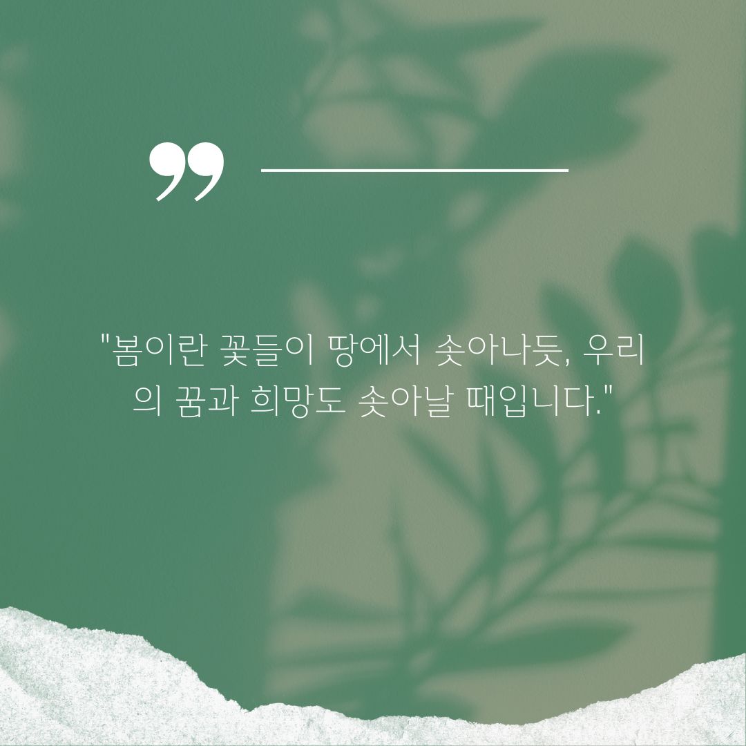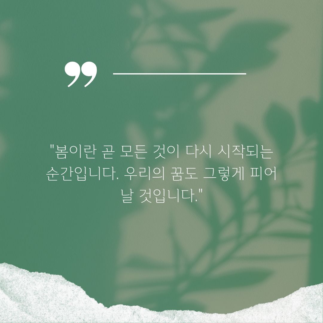 "봄은 자연이 다시 꽃피우는 계절, 우리도 새로운 시작을 꿈꿀 때입니다."